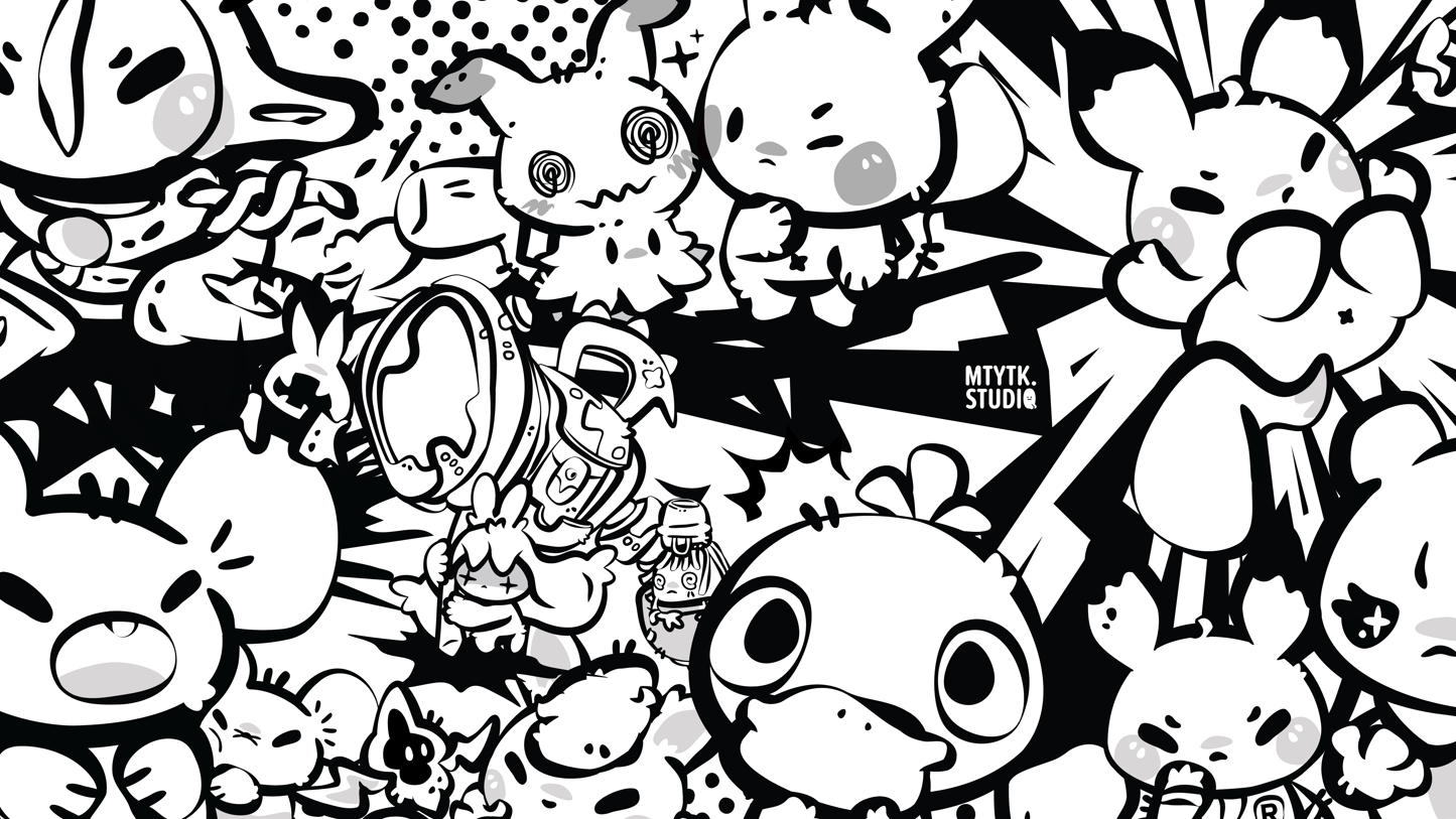 Chibi Monster Card Print Lineart B/W Collection Pack